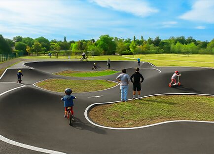 La société VOLCANO SEED, retenue pour la réalisation, conçoit un aménagement répondant à la certification AFNOR, permettant d’accueillir des compétitions officielles de la Fédération Française de Cyclisme. La pumptrack sera ouverte à toutes les pratiques de glisse urbaine et cycliste : VTT, BMX, skateboard, trottinette, rollers ou draisienne. Elle bénéficiera d’une priorité donnée au vélo, tout en intégrant des accès PMR.